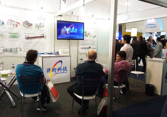 河北羿珩參加2016年南美英特國際太陽能展,展區(qū)占地面積27平米,展示了羿珩科技有限公司一系列的光伏裝備,面對絡(luò)繹不絕的觀展人員,羿珩團(tuán)隊(duì)展現(xiàn)出了最大的熱情。