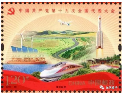 通知發(fā)出后,光伏人各個都摩拳擦掌、蓄勢待發(fā)!2017年10月18日,《中國共產(chǎn)黨第十九次全國代表大會》紀(jì)念郵票正式發(fā)行,“光伏+高鐵”同框出鏡。