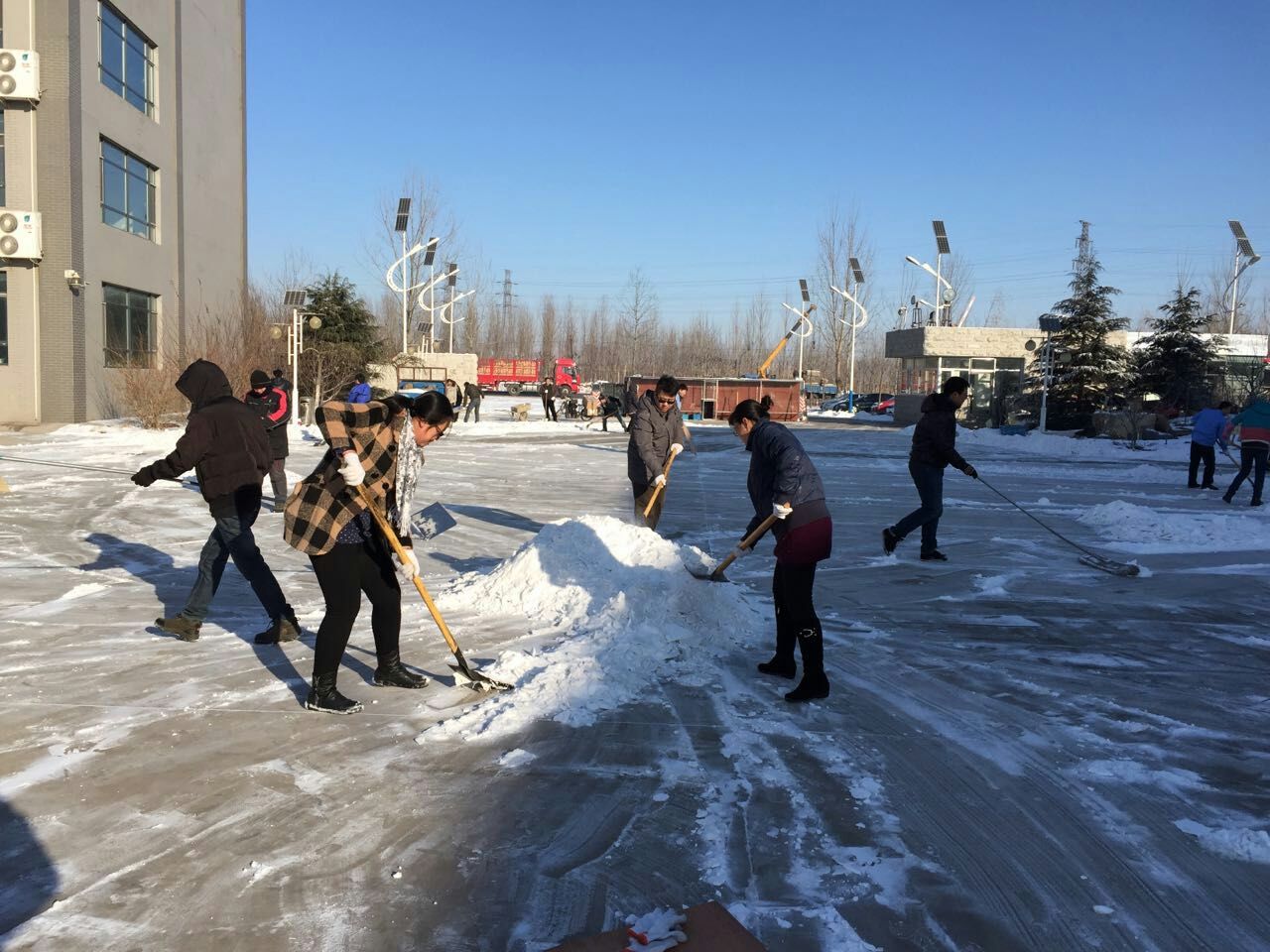 2014年12月7日秦皇島迎來了入冬以來的第一場大雪。8日清晨,厚厚的白雪覆蓋了整個廠區(qū),銀裝素裹分外美麗。為確保廠區(qū)生產(chǎn)、發(fā)貨正常進行,羿珩科技全體員工組成了幾個小分隊,劃分區(qū)域,齊心協(xié)力清掃積雪。大家干勁十足,在寒風(fēng)中相互配合,中午之前徹底完成了掃雪任務(wù)。