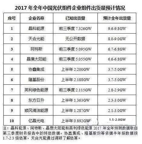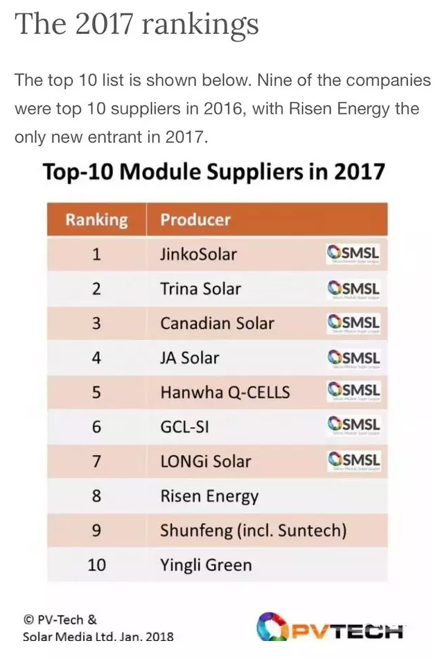 排在前10位的分別是:晶科、天合光能、阿特斯、晶澳、韓華、協(xié)鑫、隆基樂(lè)葉、東方日升、順豐清潔能源、英利。